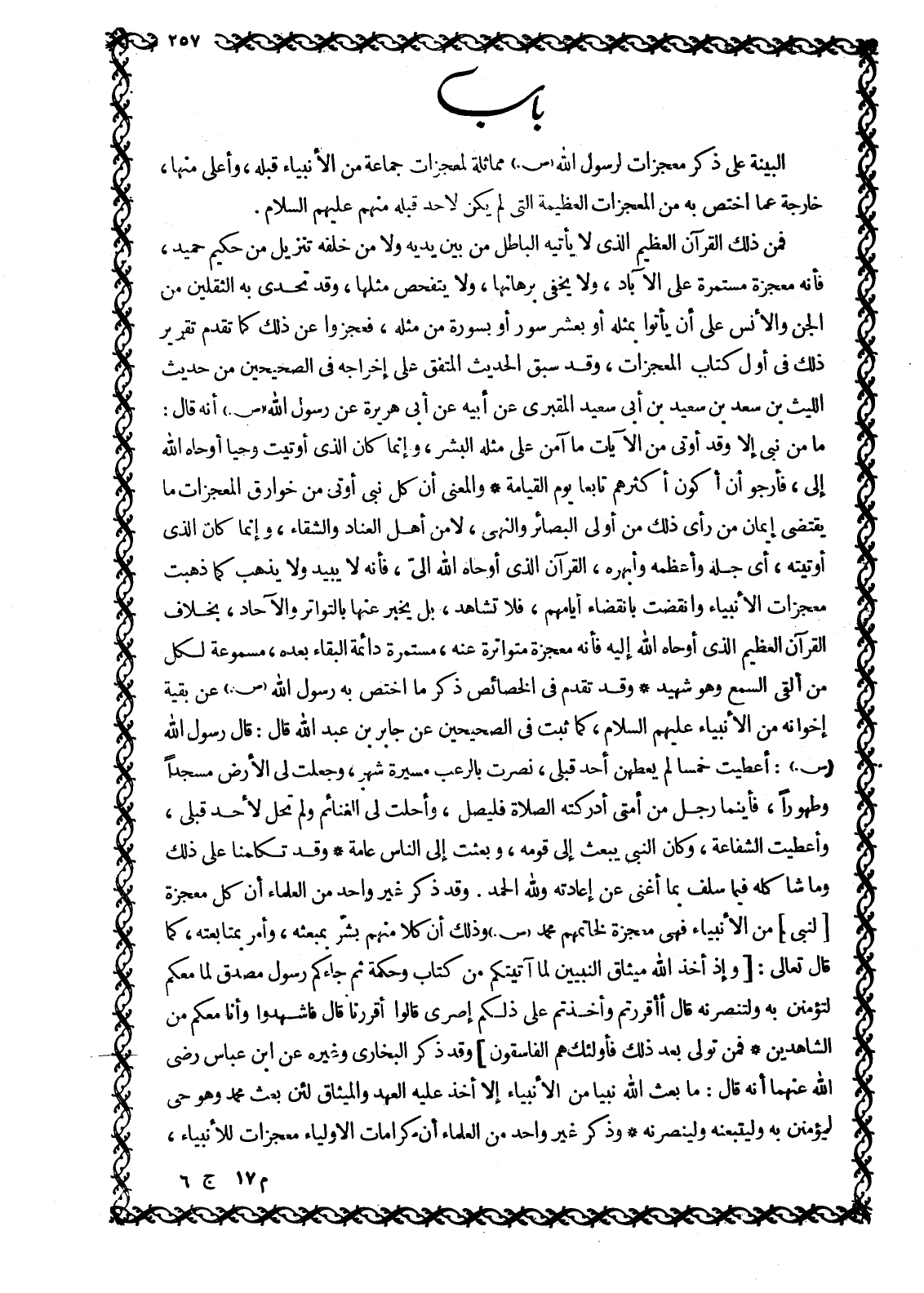 باب البينة عَلَى ذِكْرِ مُعْجِزَاتٍ لِرَسُولِ اللَّهِ صَلَّى اللَّهُ عليه وسلم مماثلة لمعجزات جماعة من الأنبياء قبله، وأعلى منها،