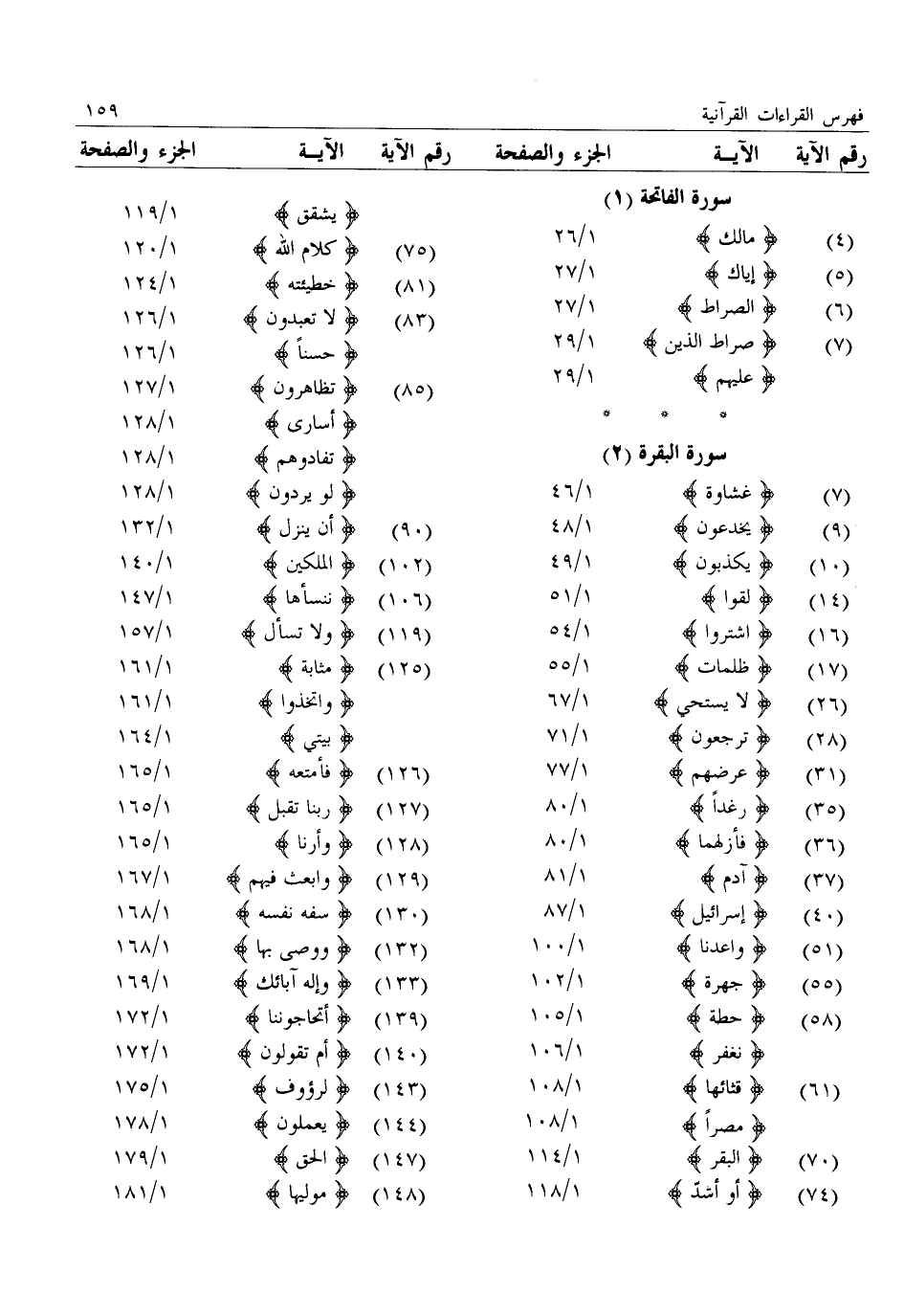 (7) : غشاوة: 1/ 46 (9) : يخدعون: 1/ 48 (10) : يكذبون: 1/ 49 (14) : لقوا: 1/ 51 (16) : اشتروا: 1/ 54 (17) : ظلمات: 1/ 55 (26) : لا يستحي: 1/ 67 (28) : ترجعون: 1/ 71 (31) : عرضهم: 1/ 77 (35) : رغدا: 1/ 80 (36) : فأزلهما: 1/ 80 (37) : آدم: 1/ 81 (40) : إسرائيل: 1/ 87 (51) : واعدنا: 1/ 100 (55) : جهرة: 1/ 102 (58) : حطة: 1/ 105: نغفر: 1/ 106 (61) : قثائها: 1/ 108: مصرا: 1/ 108 (70) : البقر: 1/ 114 (74) : أو أشدّ: 1/ 2118: يشقق: 1/ 119 (75) : كلام الله: 1/ 120 (81) : خطيئته: 1/ 124 (83) : لا تعبدون: 1/ 126: حسنا: 1/ 126 (85) : تظاهرون: 1/ 127: أسارى: 1/ 128: تفادوهم: 1/ 128: لو يردون: 1/ 128 (90) : أن ينزل: 1/ 132 (102) : الملكين: 1/ 140 (106) : ننسأها: 1/ 147 (119) : ولا تسأل: 1/ 157 (125) : مثابة: 1/ 161: واتخذوا: 1/ 161: بيتي: 1/ 164 (126) : فأمتعه: 1/ 165 (127) : ربنا تقبل: 1/ 165 (128) : وأرنا: 1/ 165 (129) : وابعث فيهم: 1/ 167 (130) : سفه نفسه: 1/ 168 (132) : ووصى بها: 1/ 168 (133) : وإله آبائك: 1/ 169 (139) : أتحاجوننا: 1/ 172 (140) : أم تقولون: 1/ 172 (143) : لرؤوف: 1/ 175 (144) : يعملون: 1/ 178 (147) : الحق: 1/ 179 (148) : موليها: 1/ 181