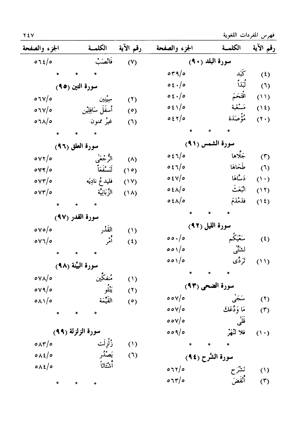 (4) : كبد: 5/ 539 (6) : لبدا: 5/ 540 (11) : اقتحم: 5/ 540 (14) : مسغبة: 5/ 541 (20) : مؤصدة: 5/ 542