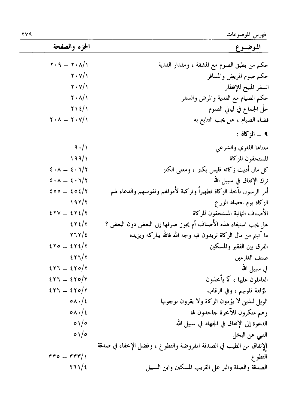 حكم من يطيق الصوم مع المشقة، ومقدار الفدية 1/ 208- 209 حكم صوم المريض والمسافر 1/ 207 السفر المبيح للإفطار 1/ 207 حكم الصيام مع الفدية والمرض والسفر 1/ 208 حلّ الجماع في ليالي الصوم 1/ 214 قضاء الصيام، هل يجب التتابع به 1/ 207- 208