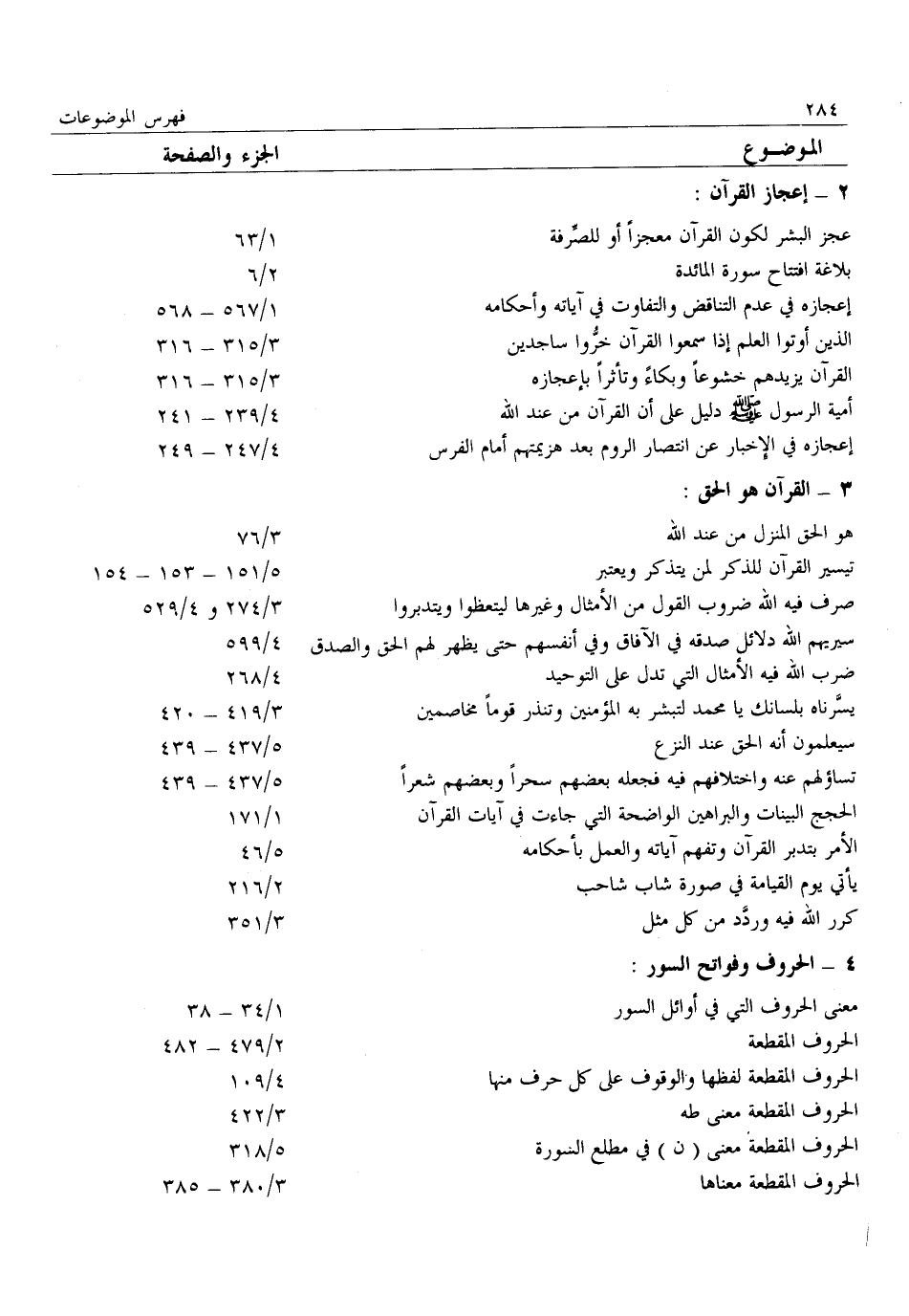 معنى الحروف التي في أوائل السور 1/ 34- 38 الحروف المقطعة 2/ 479- 482 الحروف المقطعة لفظها والوقوف على كل حرف منها 4/ 109 الحروف المقطعة معنى طه 3/ 422 الحروف المقطعة معنى (ن) في مطلع السورة 5/ 318 الحروف المقطعة معناها 3/ 380- 385