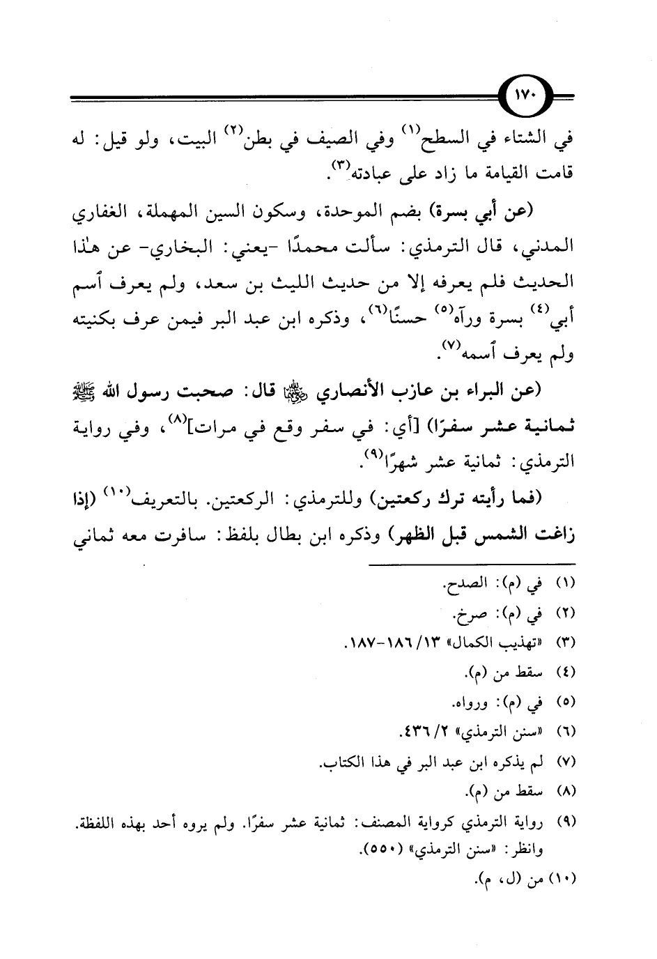 (عن البراء بن عازب الأنصاري - رضي الله عنهما - قال: صحبت رسول الله - صلى الله عليه وسلم - ثمانية عشر سفرًا) [أي: في سفر وقع في مرات] (¬8)، وفي رواية الترمذي: ثمانية عشر شهرًا (¬9).