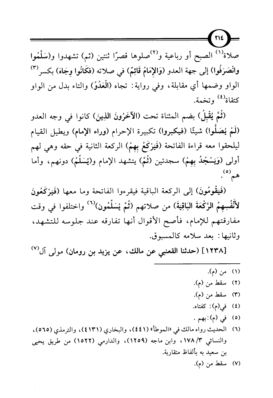 [1238] (حدثنا القعنبي عن مالك، عن يزيد بن رومان) مولى آل (¬7)