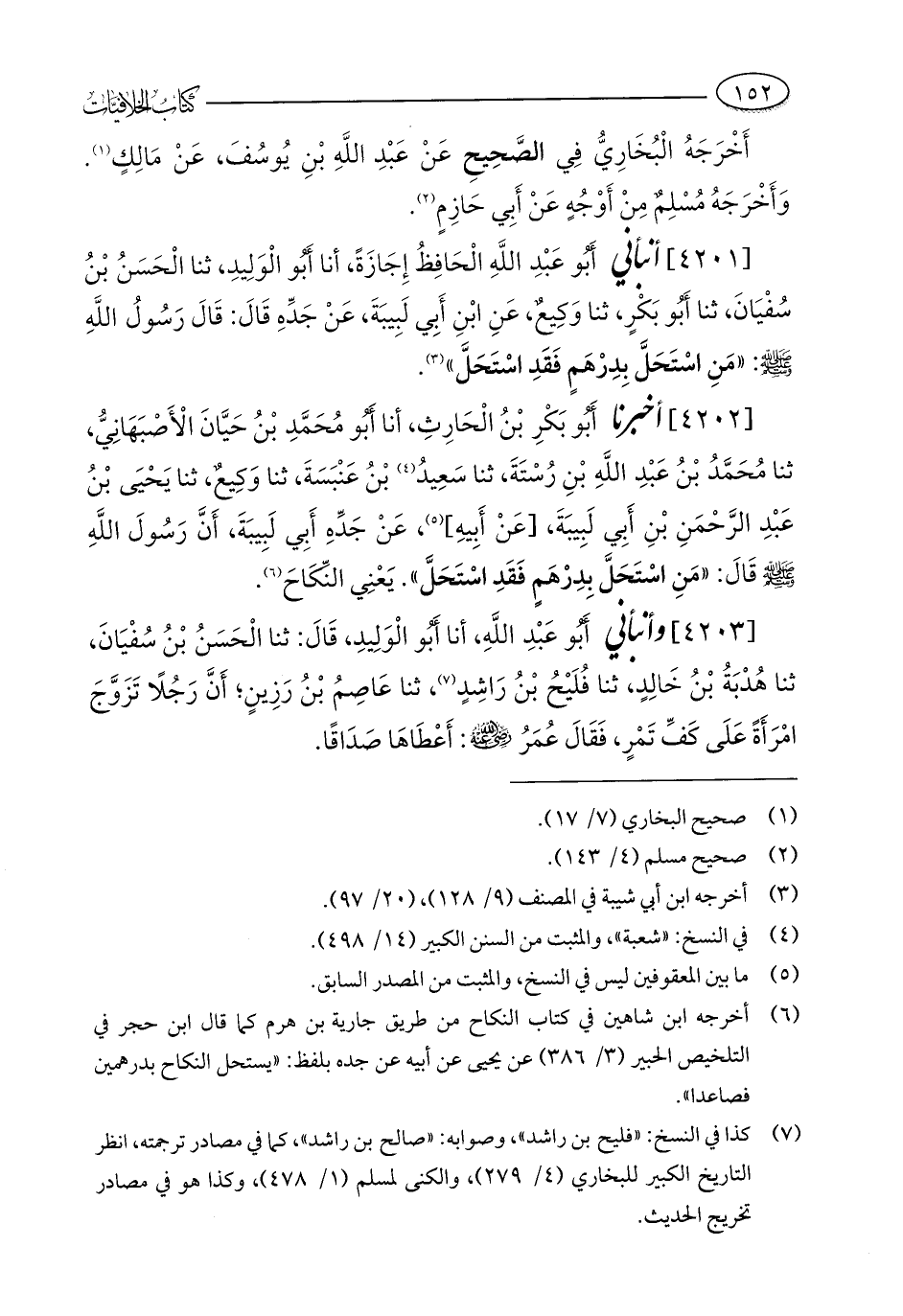 (¬6) أخرجه ابن شاهين في كتاب النكاح من طريق جارية بن هرم كما قال ابن حجر في التلخيص الحبير (3/ 386) عن يحيى عن أبيه عن جده بلفظ: "يستحل النكاح بدرهمين فصاعدا".