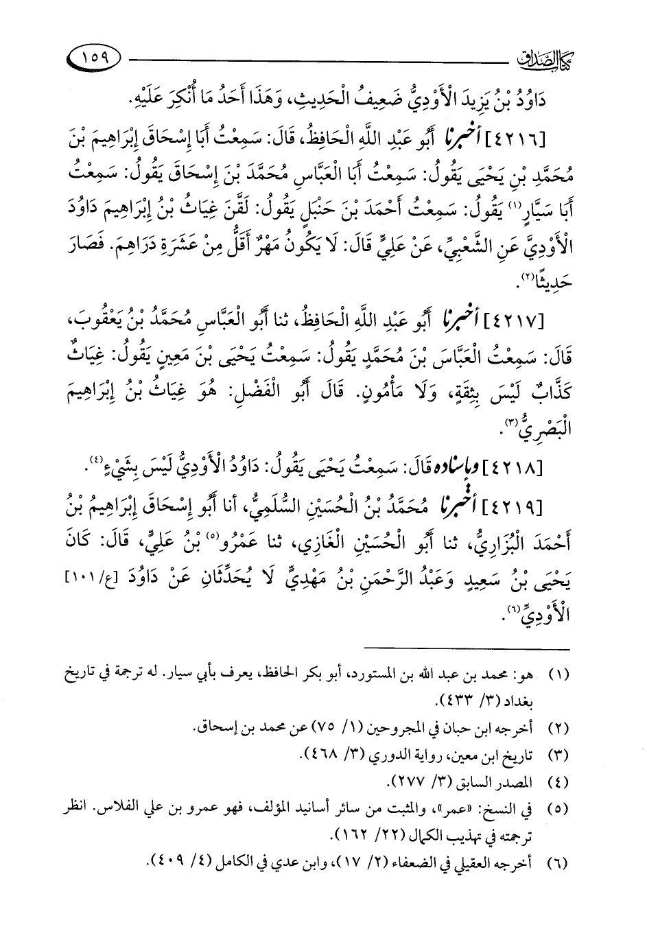 [4218] وبإسناده قَالَ: سَمِعْتُ يَحْيَى يَقُولُ: دَاوُدُ الْأَوْدِيُّ لَيْسَ بِشَيْءٍ (¬4).