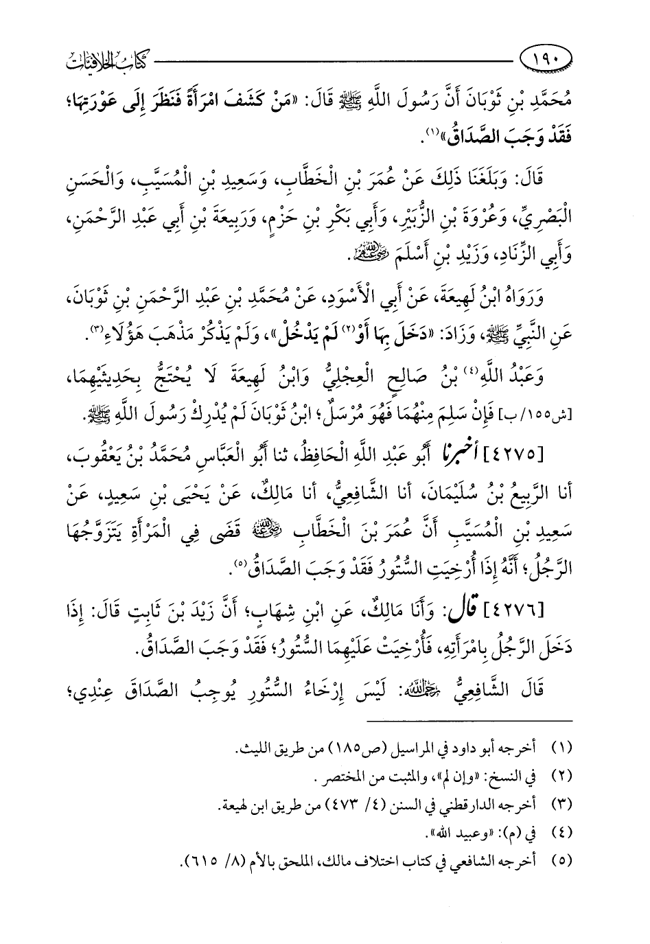 (¬5) أخرجه الشافعي في كتاب اختلاف مالك، الملحق بالأم (8/ 615).