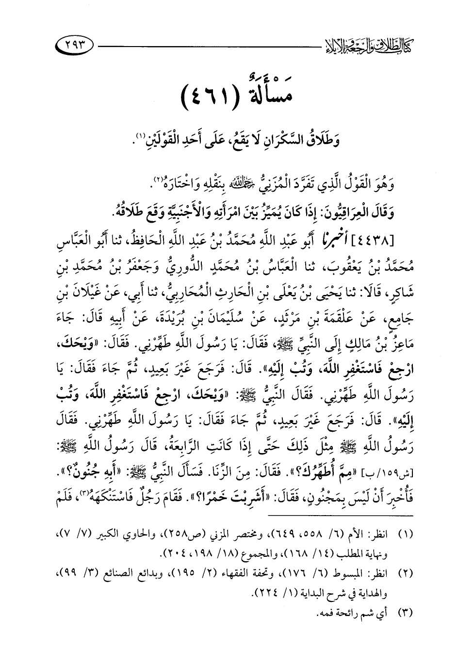 (¬2) انظر: المبسوط (6/ 176)، وتحفة الفقهاء (2/ 195)، وبدائع الصنائع (3/ 99)، والهداية في شرح البداية (1/ 224).