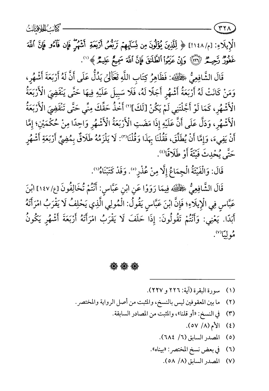 الْإِيلَاءِ: {لِلَّذِينَ يُؤْلُونَ مِنْ نِسَائِهِمْ تَرَبُّصُ أَرْبَعَةِ أَشْهُرٍ فَإِنْ فَاءُوا فَإِنَّ اللَّهَ غَفُورٌ رَحِيمٌ (226) وَإِنْ عَزَمُوا الطَّلَاقَ فَإِنَّ اللَّهَ سَمِيعٌ عَلِيمٌ} (¬1).