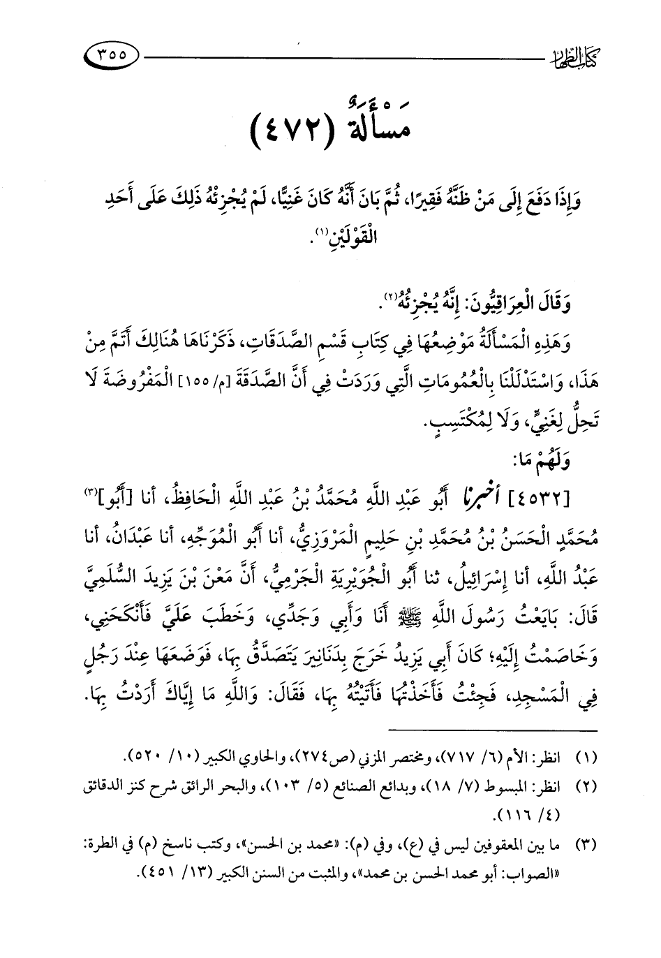 (¬2) انظر: المبسوط (7/ 18)، وبدائع الصنائع (5/ 103)، والبحر الرائق شرح كنز الدقائق (4/ 116).