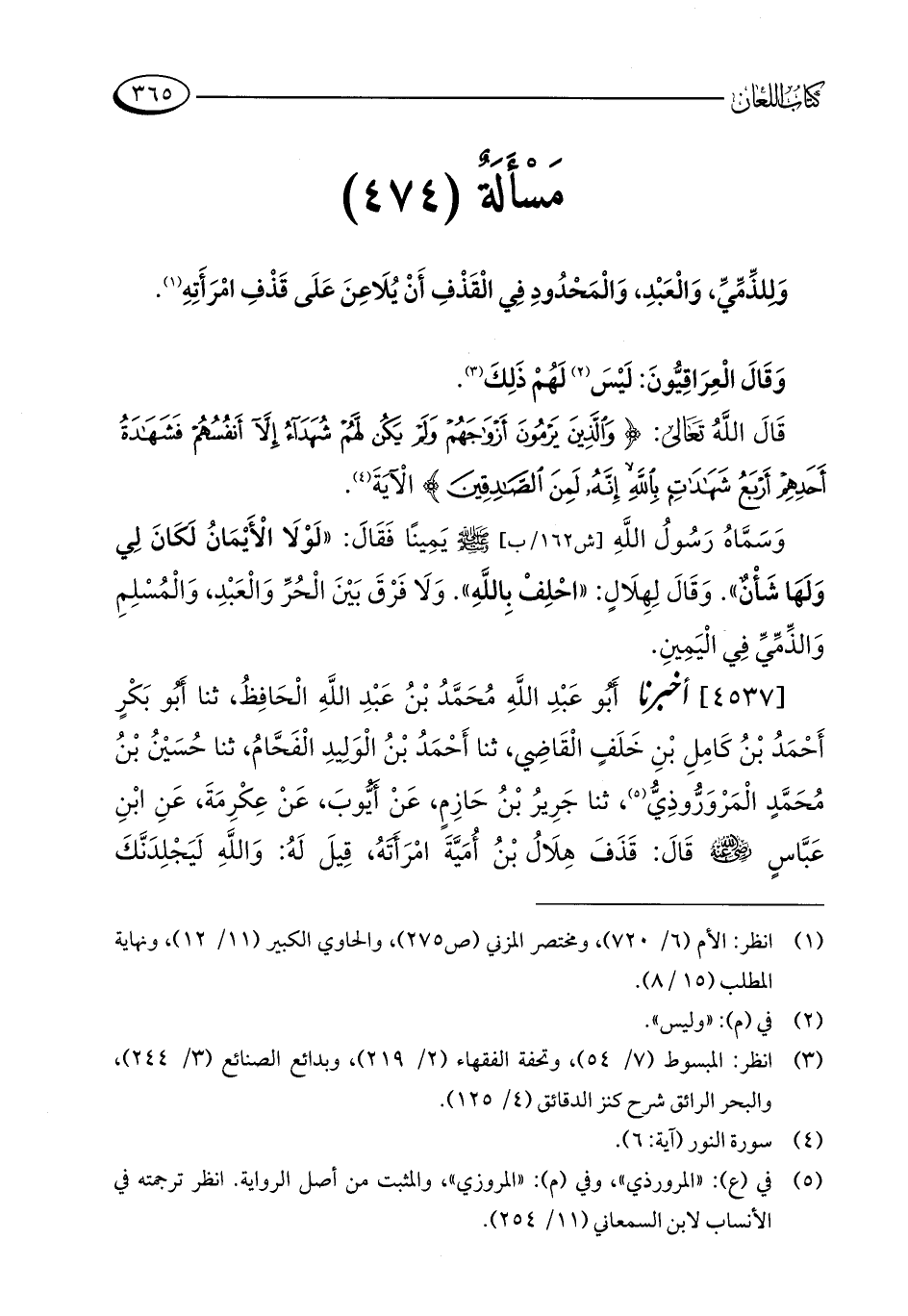 مَسْأَلَةٌ (474): وَلِلذِّمِّيِّ، وَالْعَبْدِ، وَالْمَحْدُودِ فِي الْقَذْفِ أَنْ يُلَاعِنَ عَلَى قَذْفِ امْرَأَتِهِ (¬1).