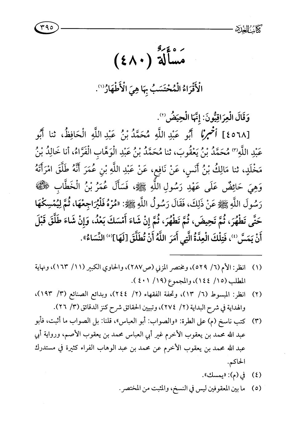 مَسْأَلَةٌ (480): الْأَقْرَاءُ الْمُحْتَسَبُ بِهَا هِيَ الْأَطْهَارُ (¬1).