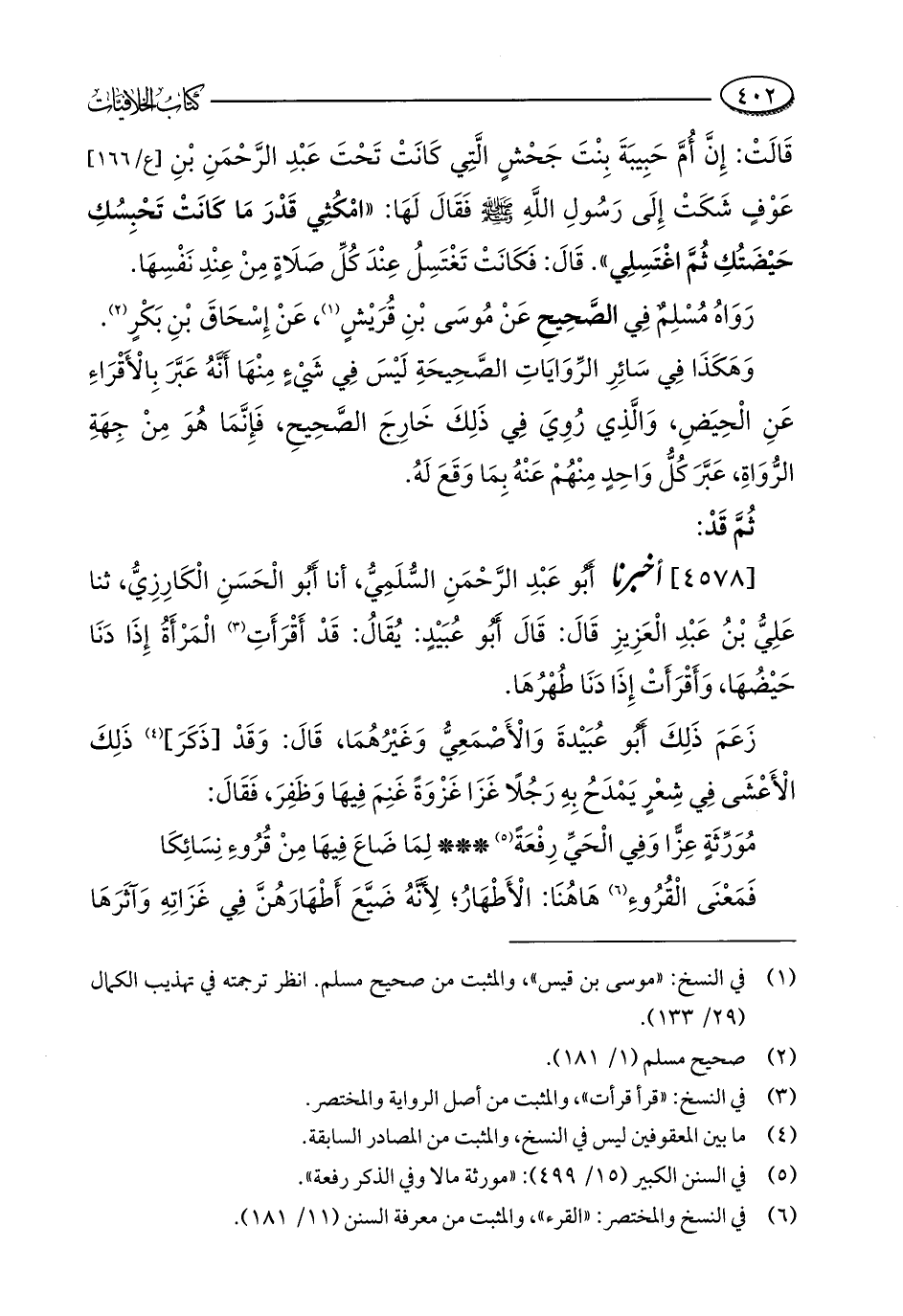 (¬6) في النسخ والمختصر: "القرء"، والمثبت من معرفة السنن (11/ 181).