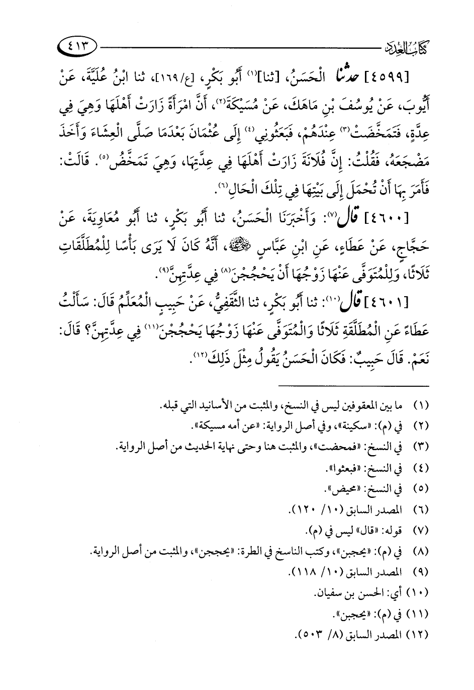 [4601] قال (¬10): ثنا أَبُو بَكْرٍ، ثنا الثَّقَفِيُّ، عَنْ حَبِيبٍ الْمُعَلِّمُ قَالَ: سَأَلْتُ عَطَاءً عَنِ الْمُطَلَّقَةِ ثَلَاثًا وَالْمُتَوَفَّى عَنْهَا زَوْجُهَا يَحْجُجْنَ (¬11) فِي عِدَّتِهِنَّ؟ قَالَ: نَعَمْ. قَالَ حَبِيبٌ: فَكَانَ الْحَسَنُ يَقُولُ مِثْلَ ذَلِكَ (¬12).