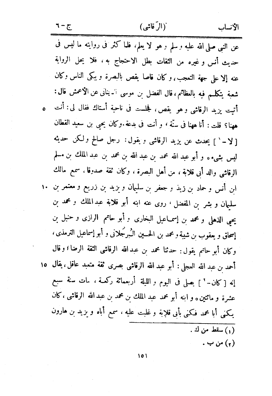 أتيت يزيد الرقاشيّ وهو يقص، فجلست في ناحية أستاك فقال لي: أنت هاهنا؟ قلت: أنا هاهنا في سنّة، وأنت في بدعة. وكان يحيى بن سعيد القطان [لا-[1]] يحدث عن يزيد الرقاشيّ ويقول: رجل صالح ولكن حديثه ليس بشيء وأبو عبد الله محمد بن عبد الله بن محمد بن عبد الملك بن مسلم الرقاشيّ والد أبى قلابة، من أهل البصرة، وكان ثقة صدوقا، سمع مالك ابن أنس وحماد بن زيد وجعفر بن سليمان ويزيد بن زريع ومعتمر بن سليمان وبشر بن المفضل، روى عنه ابنه أبو قلابة عبد الملك ومحمد بن يحيى الذهلي ومحمد بن إسماعيل البخاري وأبو حاتم الرازيّ وحنبل بن إسحاق ويعقوب بن شيبة ومحمد بن الحسين البرجلاني وأبو إسماعيل الترمذي، وكان أبو حاتم يقول: حدثنا محمد بن عبد الله الرقاشيّ الثقة الرضا، وقال أحمد بن عبد الله العجليّ: أبو عبد الله الرقاشيّ بصرى ثقة متعبد عاقل، يقال إنه [كان-[2]] يصلى في اليوم والليلة أربعمائة ركعة، مات سنة سبع عشرة ومائتين وابنه أبو محمد عبد الملك بن محمد بن عبد الله الرقاشيّ، كان يكنى أبا محمد فكنى بأبي قلابة وغلبت عليه، سمع أباه ويزيد بن هارون