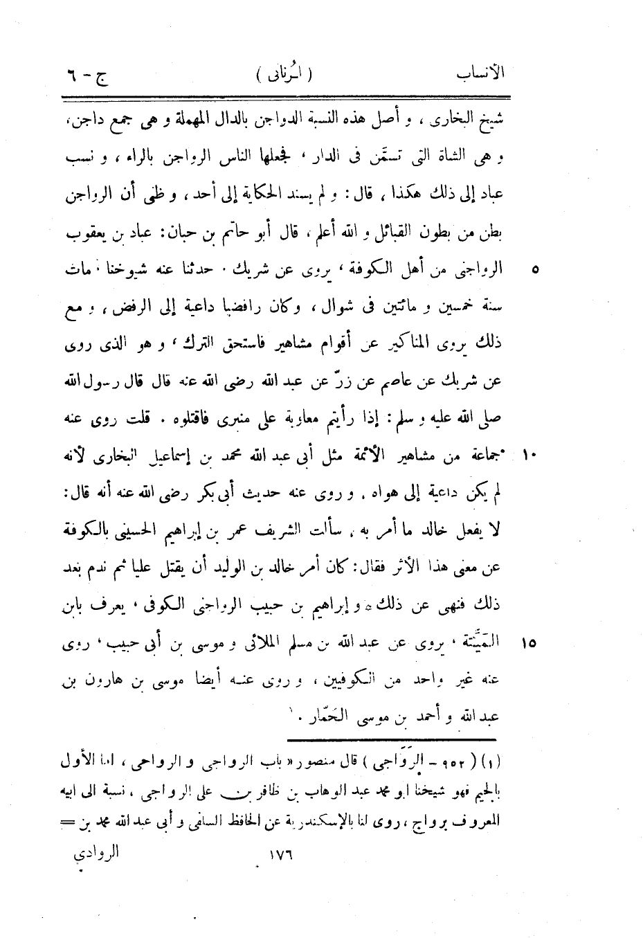 [1] (952- الرَوَاجى) قال منصور «باب الرواجى والرواحي، اما الأول بالجيم فهو شيخنا ابو محمد بعد الوهاب بن ظافر بن على الرواجى، نسبة الى أبيه المعروف برواج، روى لنا بالإسكندرية عن الحافظ السلفي وأبى عبد الله محمد بن