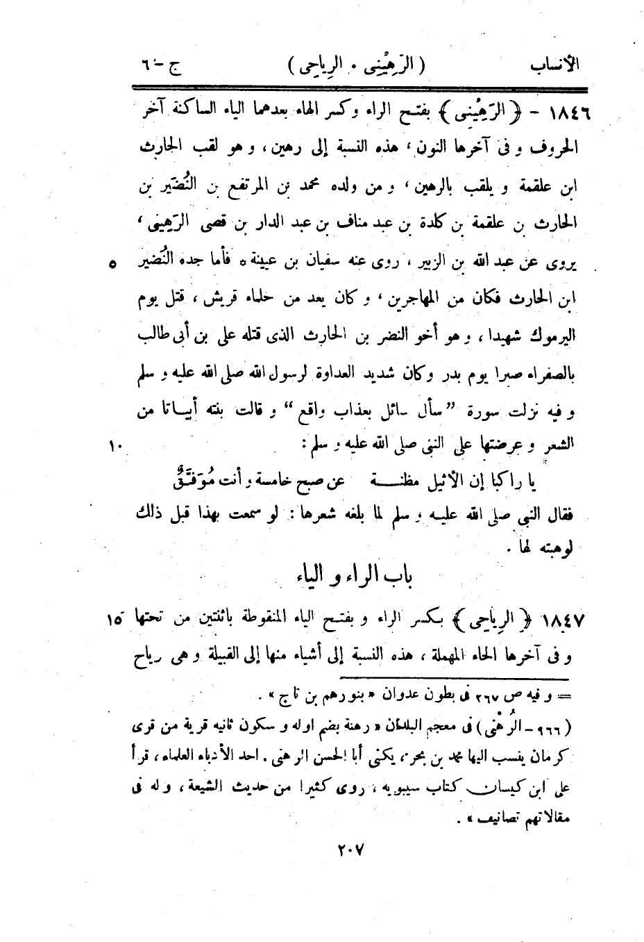 (966- الرهنى) في معجم البلدان «رهنة بضم اوله وسكون ثانيه قرية من قرى كرمان ينسب اليها محمد بن بحر، يكنى أبا الحسن الرهنى، أحد الأدباء العلماء، قرأ على ابن كيسان كتاب سيبويه، روى كثيرا من حديث الشيعة، وله في مقالاتهم تصانيف» .