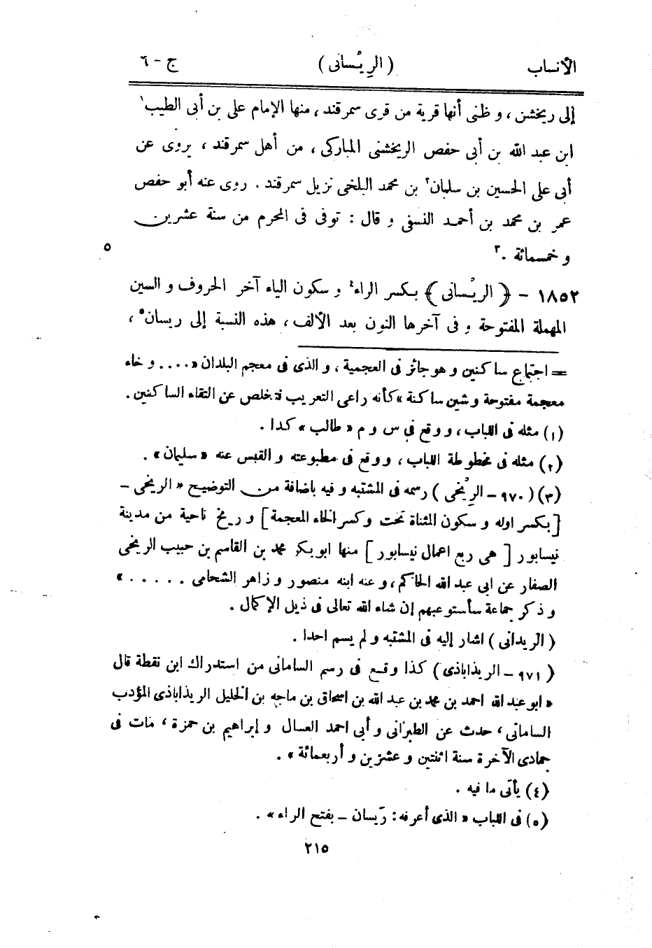 بكسر الراء [4] وسكون الياء آخر الحروف والسين المهملة المفتوحة وفي آخرها النون بعد الألف، هذه النسبة إلى ريسان [5] ،