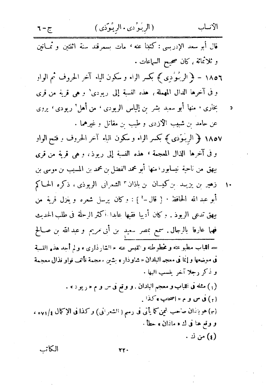 [ () ] اللباب مطبوعته ومخطوطته والقبس عنه «الشارذارى» ولم أجد هذه النسبة في موضعها وإنما في معجم البلدان «شاوذار» بشين معجمة فألف فواو فذال معجمة وذكر رجلا آخر ينسب اليها.