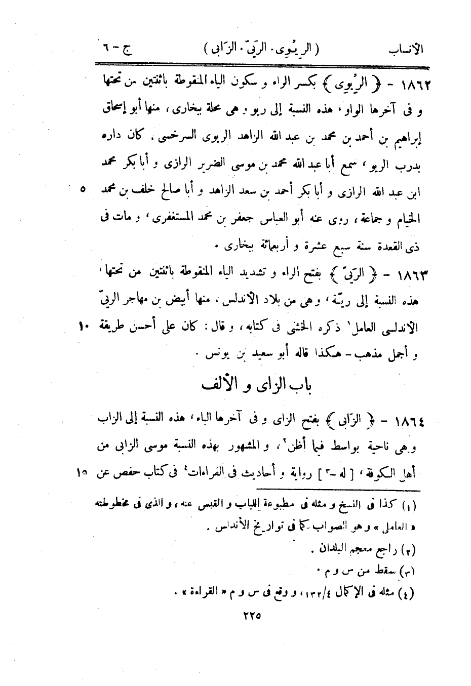 بفتح الزاى وفي آخرها الباء، هذه النسبة إلى الزاب وهي ناحية بواسط فيما أظن [2] ، والمشهور بهذه النسبة موسى الزابي من أهل الكوفة، [له-[3]] رواية وأحاديث في القراءات [4] في كتاب حفص عن