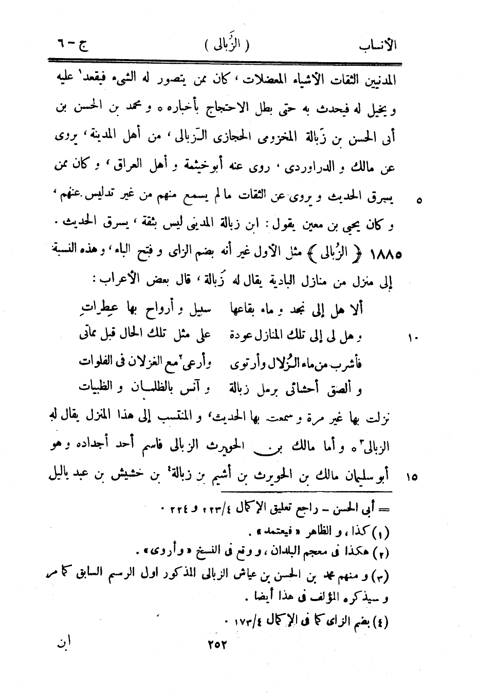 مثل الأول غير أنه بضم الزاى وفتح الباء، وهذه النسبة إلى منزل من منازل البادية يقال له زبالة، قال بعض الأعراب: