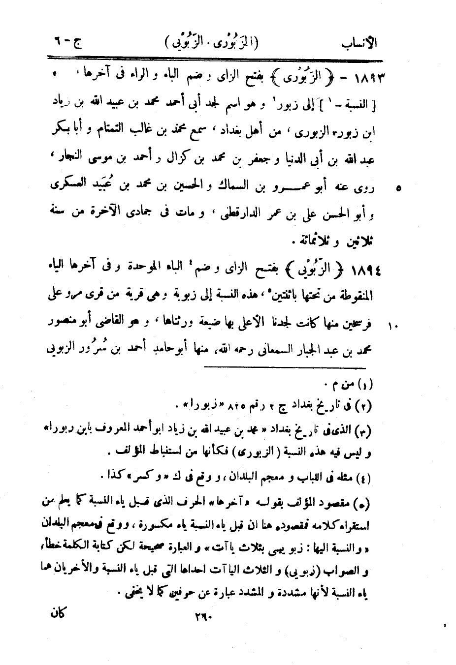 بفتح الزاى وضم [4] الباء الموحدة وفي آخرها الياء المنقوطة من تحتها باثنتين [5] ، هذه النسبة إلى زبوية وهي قرية من قرى مرو على فرسخين منها كانت لجدنا الأعلى بها ضيعة ورثناها، وهو القاضي أبو منصور محمد بن عبد الجبار السمعاني رحمه الله، منها أبو حامد أحمد بن سرور الزَبُوْيي