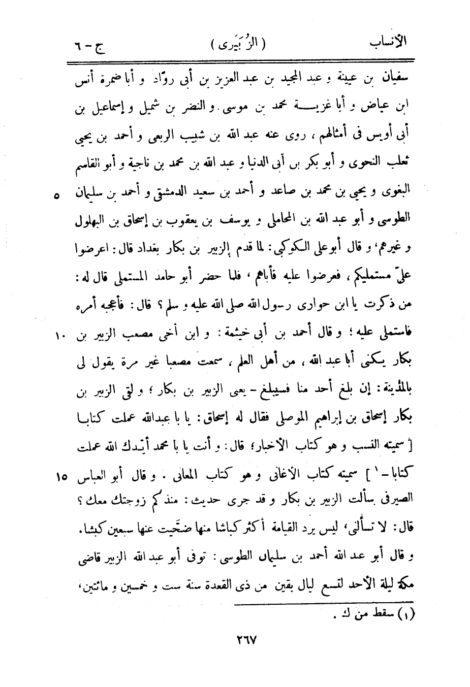 من ذكرت يا ابن حواري رسول الله صلى الله عليه وسلم؟ قال: فأعجبه أمره فاستملى عليه، وقال أحمد بن أبى خيثمة: وابن أخى مصعب الزبير بن بكار يكنى أبا عبد الله، من أهل العلم، سمعت مصعبا غير مرة يقول لي بالمدينة: إن بلغ أحد منا فسيبلغ- يعنى الزبير بن بكار، ولقي الزبير بن بكار إسحاق بن إبراهيم الموصلي فقال له إسحاق: يا با عبد الله عملت كتابا [سميته النسب وهو كتاب الأخبار، قال: وأنت يا با محمد أيّدك الله عملت كتابا-[1]] سميته كتاب الأغاني وهو كتاب المعاني. وقال أبو العباس الصيرفي سألت الزبير بن بكار وقد جرى حديث: منذ كم زوجتك معك؟