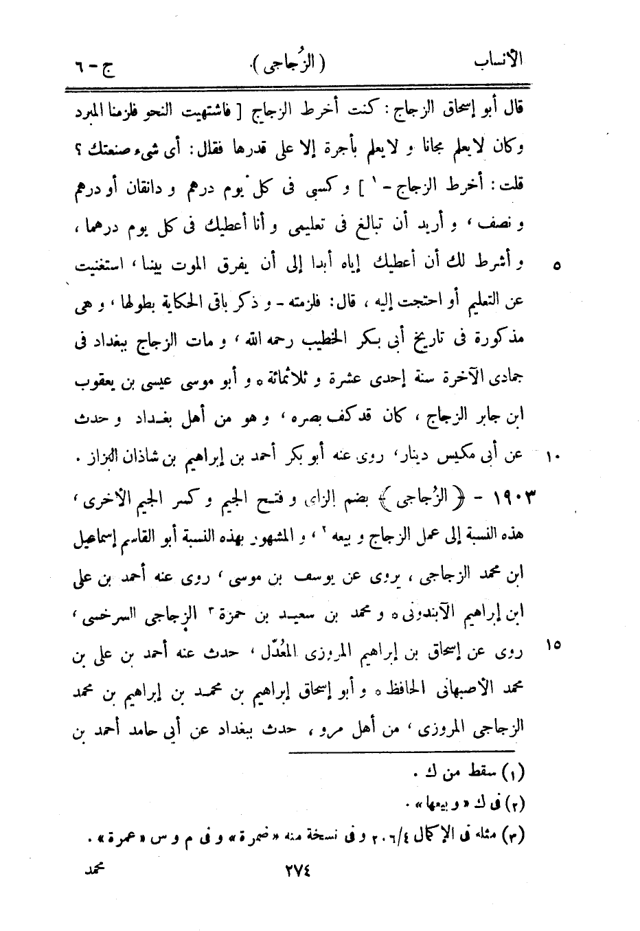 قلت: أخرط الزجاج-[1]] وكسبي في كل يوم درهم ودانقان أو درهم ونصف، وأريد أن تبالغ في تعليمي وأنا أعطيك في كل يوم درهما، وأشرط لك أن أعطيك إياه أبدا إلى أن يفرق الموت بينا، استغنيت عن التعليم أو احتجت إليه، قال: فلزمته- وذكر باقي الحكاية بطولها، وهي مذكورة في تاريخ أبى بكر الخطيب رحمه الله، ومات الزجاج ببغداد في جمادى الآخرة سنة إحدى عشرة وثلاثمائة وأبو موسى عيسى بن يعقوب ابن جابر الزجاج، كان قد كف بصره، وهو من أهل بغداد وحدث عن أبى مكيس دينار، روى عنه أبو بكر أحمد بن إبراهيم بن شاذان البزاز.