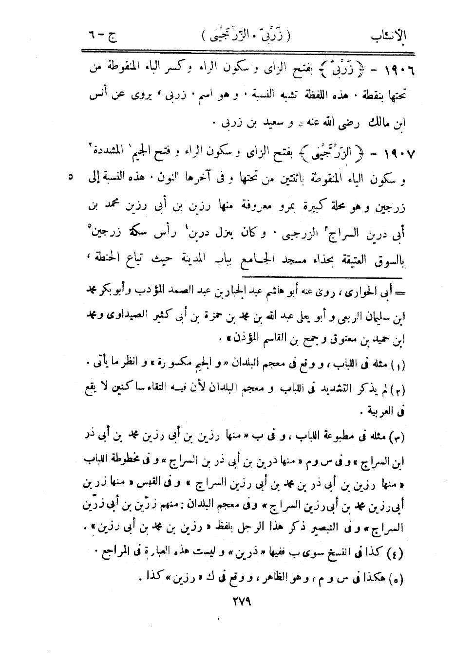 بفتح الزاى وسكون الراء وفتح الجيم [1] المشددة [2] وسكون الياء المنقوطة باثنتين من تحتها وفي آخرها النون. هذه النسبة إلى زرجين وهو محلة كبيرة بمرو معروفة منها رزين بن أبى رزين محمد بن أبى درين السراج [3] الزرجينى، وكان ينزل درين [4] رأس سكة زرجين [5] بالسوق العتيقة بحذاء مسجد الجامع بباب المدينة حيث تباع الحنطة،