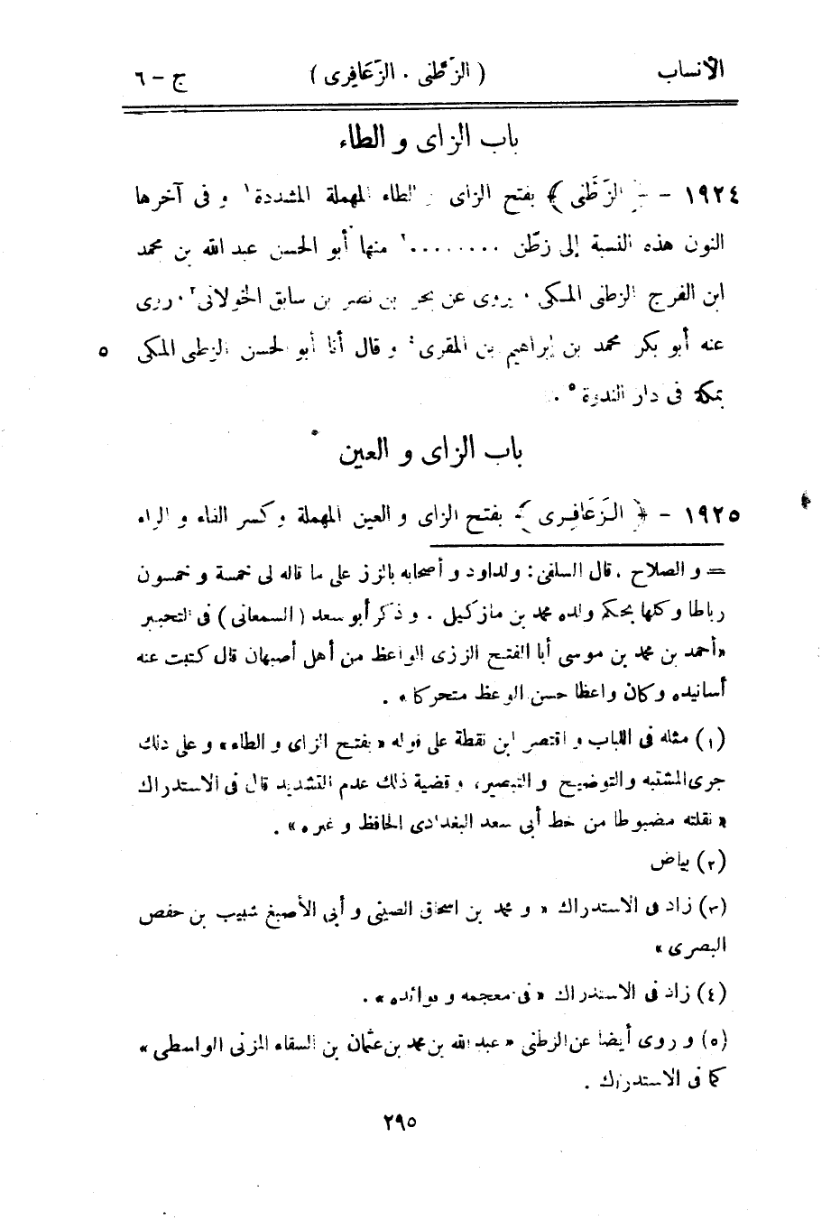 [1] مثله في اللباب واقتصر ابن نقطة على قوله «بفتح الزاى والطاء» وعلى ذلك جرى المشتبه والتوضيح والتبصير، وقضية ذلك عدم التشديد قال في الاستدراك «نقلته مضبوطا من خط أبى سعد البغدادي الحافظ وغيره» .
