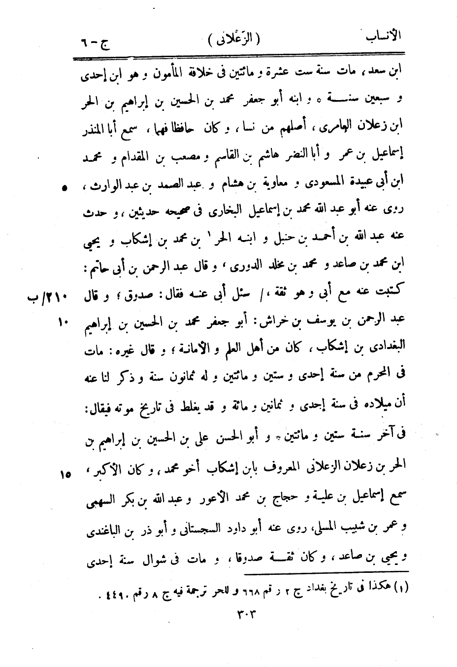 [1] هكذا في تاريخ بغداد ج 2 رقم 668 وللحر ترجمة فيه ج 8 رقم 4490.