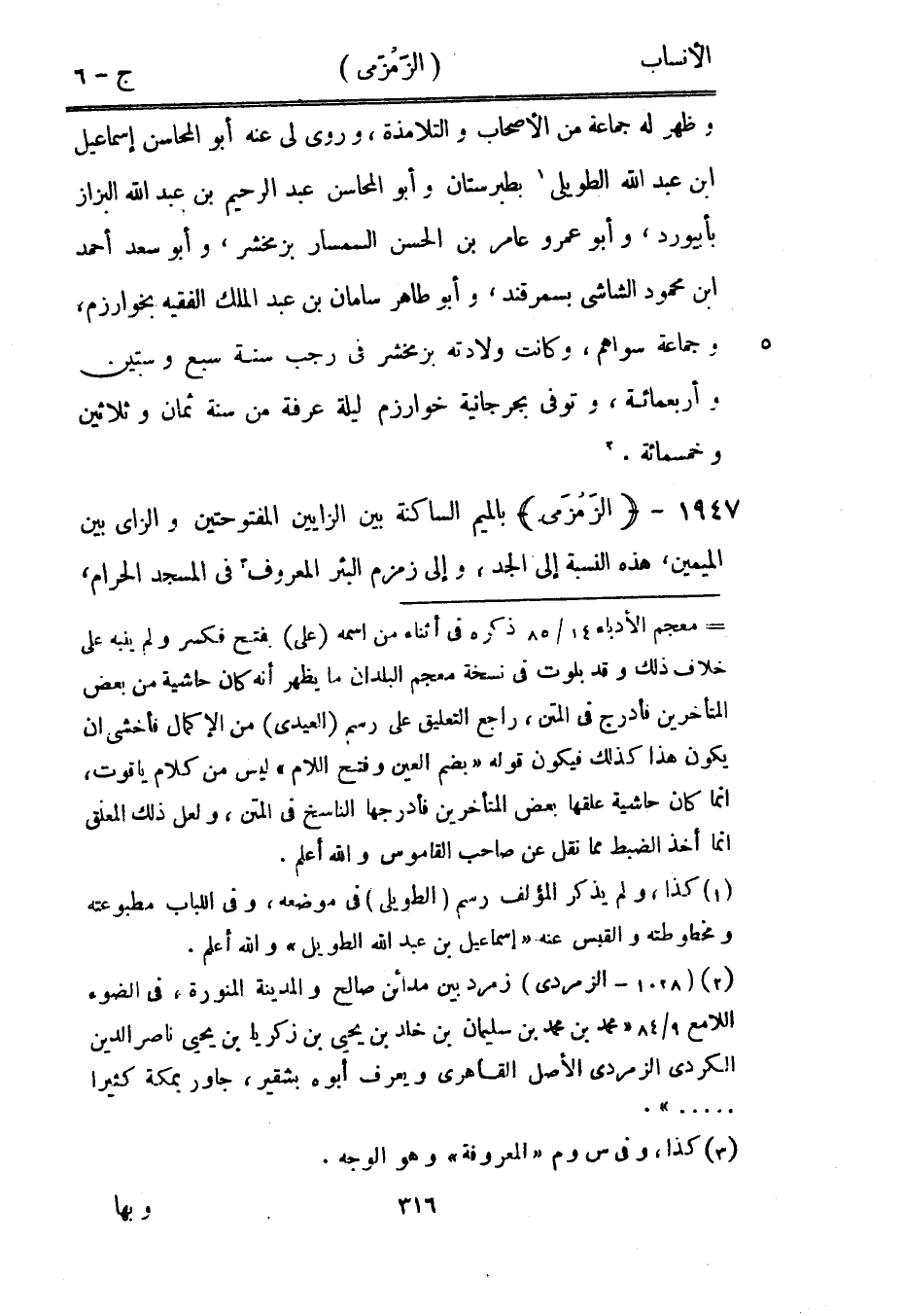 بالميم الساكنة بين الزايين المفتوحتين والزاى بين الميمين، هذه النسبة إلى الجد، وإلى زمزم البئر المعروف [3] في المسجد الحرام،