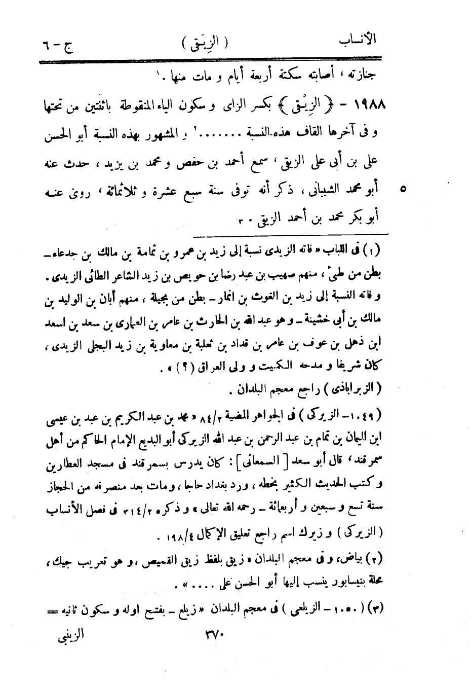 [2] بياض، وفي معجم البلدان «زيق بلفظ زيق القميص، وهو تعريب جيك، محلة بنيسابور ينسب إليها أبو الحسن على....» .