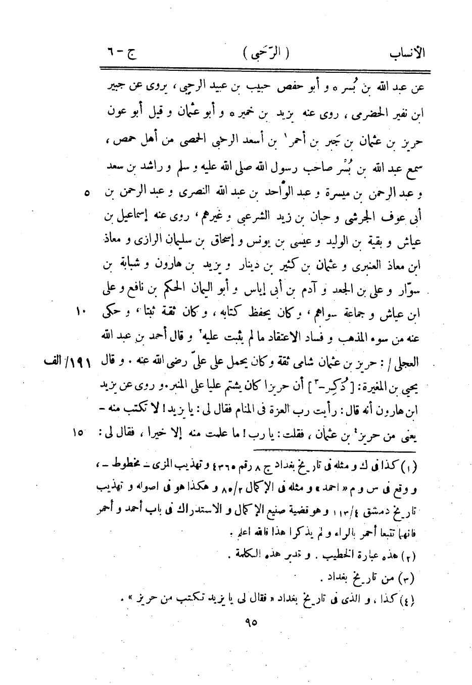 [4] كذا، والّذي في تاريخ بغداد «فقال لي يا يزيد تكتب من حريز» .