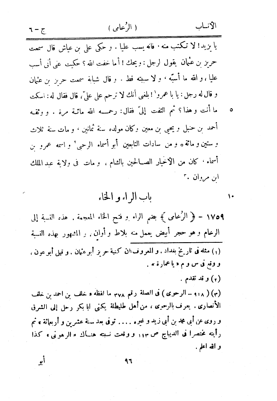 يا يزيد! لا تكتب منه، فإنه يسب عليا. وحكى على بن عياش قال سمعت حريز بن عثمان يقول لرجل: ويحك! أما خفت الله؟ حكيت عنى أنى أسب عليا، والله ما أسبّه، ولا سببته قط. وقال شبابة سمعت حريز بن عثمان وقال له رجل: يا با عمرو [1] ! بلغني أنك لا ترحم على عليّ، قال فقال له: اسكت ما أنت وهذا؟ ثم التفت إليّ فقال: رحمه الله مائة مرة. ووثقه أحمد بن حنبل ويحيى بن معين وكان مولده سنة ثمانين، ومات سنة ثلاث وستين ومائة ومن سادات التابعين أبو أسماء الرحبيّ [2] واسمه عمرو بن أسماء، كان من الأخيار الصالحين بالشام، ومات في ولاية عبد الملك ابن مروان. [3]