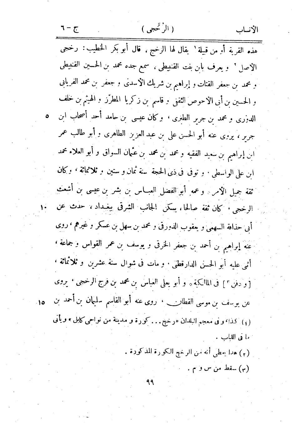 [1] كذا، وفي معجم البلدان «رخج ... كورة ومدينة من نواحي كابل» ويأتى ما في اللباب.
