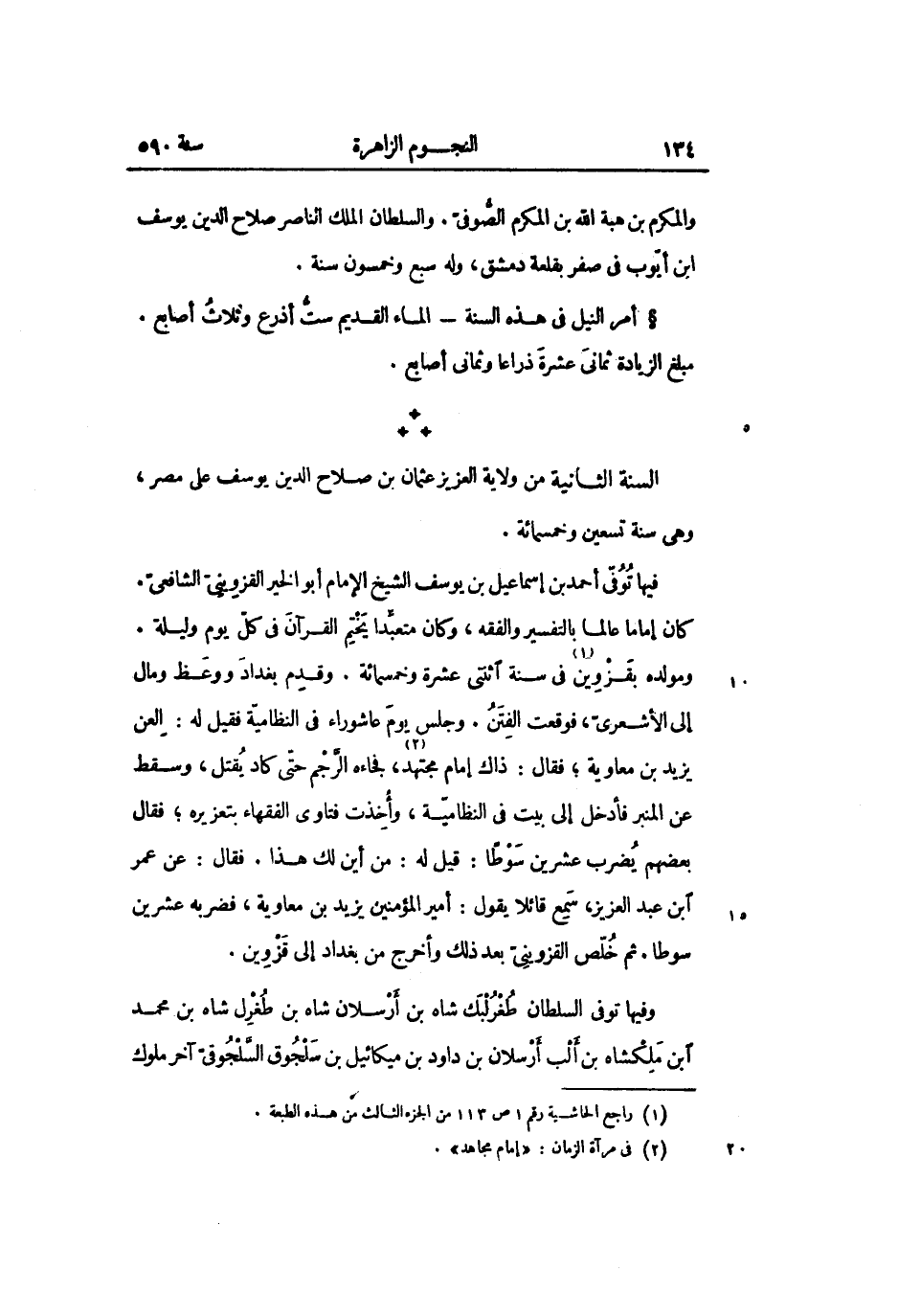 السنة الثانية من ولاية العزيز عثمان بن صلاح الدين يوسف على مصر، وهى سنة تسعين وخمسمائة.
