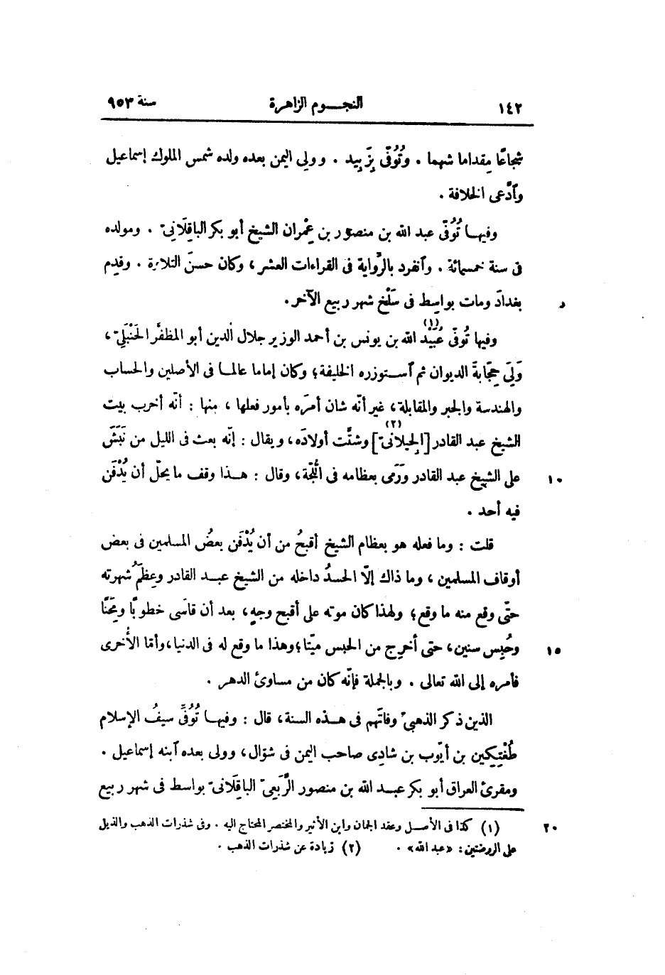 قلت: وما فعله هو بعظام الشيخ أقبح من أن يدفن بعض المسلمين فى بعض أوقاف المسلمين، وما ذاك إلّا الحسد داخله من الشيخ عبد القادر وعظم شهرته حتّى وقع منه ما وقع؛ ولهذا كان موته على أقبح وجه، بعد أن قاسى خطوبا ومحنّا وحبس سنين، حتى أخرج من الحبس ميّتا؛ وهذا ما وقع له فى الدنيا، وأمّا الأخرى فأمره إلى الله تعالى. وبالجملة فإنّه كان من مساوىء الدهر.