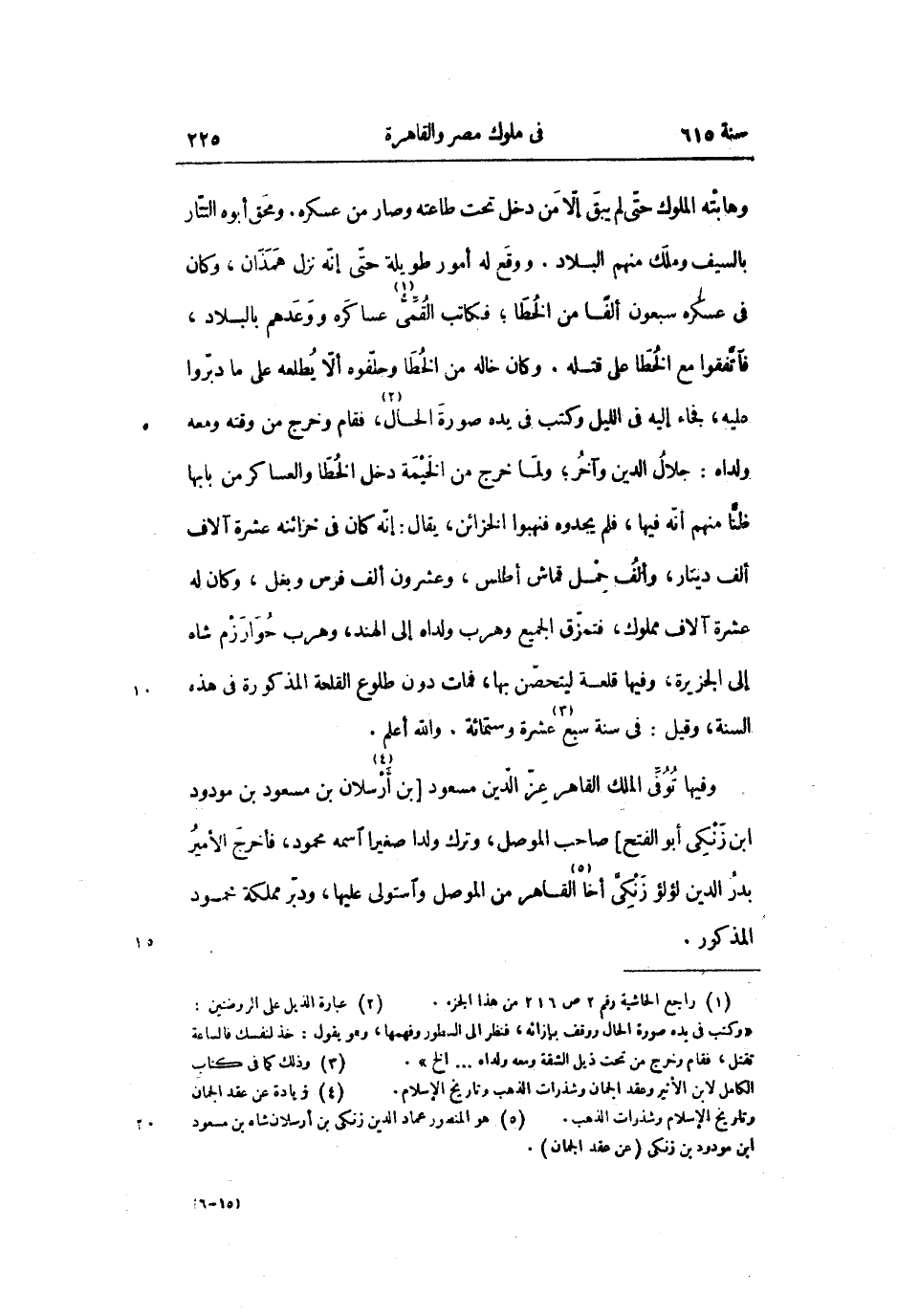 وفيها توفّى الملك القاهر عزّ الدّين مسعود [بن أرسلان «4» بن مسعود بن مودود ابن زنكى أبو الفتح] صاحب الموصل، وترك ولدا صغيرا اسمه محمود، فأخرج الأمير بدر الدين لؤلؤ زنكىّ أخا «5» القاهر من الموصل واستولى عليها، ودبّر مملكة محمود المذكور.