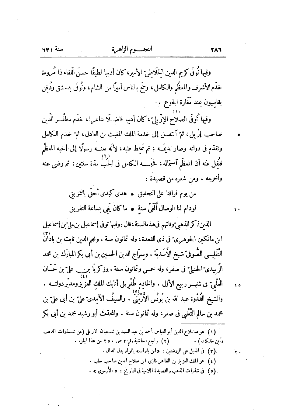 وفيها توفّى الصلاح «1» الإربلىّ، كان أديبا فاضلا شاعرا، خدم مظفّر الدّين صاحب إربل، ثمّ انتقل إلى خدمة الملك المغيث بن العادل، ثمّ خدم الكامل وتقدّم فى دولته وصار نديمه؛ ثم سخط عليه، لأنّه بعثه رسولا إلى أخيه المعظّم فنقل عنه أنّ المعظّم استماله، فحبسه الكامل فى الجبّ «2» مدّة سنتين، ثم رضى عنه وأخرجه. ومن شعره من قصيدة: