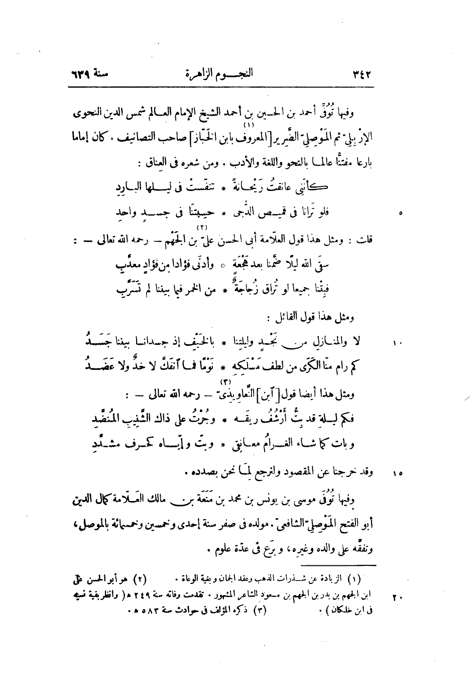 وفيها توفى موسى بن يونس بن محمد بن منعة بن مالك العلّامة كمال الدين أبو الفتح الموصلىّ الشافعىّ. مولده فى صفر سنة إحدى وخمسين وخمسمائة بالموصل، وتفقّه على والده وغيره، وبرع فى عدّة علوم.