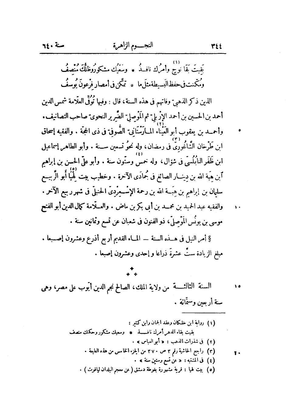 السنة الثالثة من ولاية الملك، الصالح نجم الدين أيّوب على مصر، وهى سنة أربعين وستّمائة.