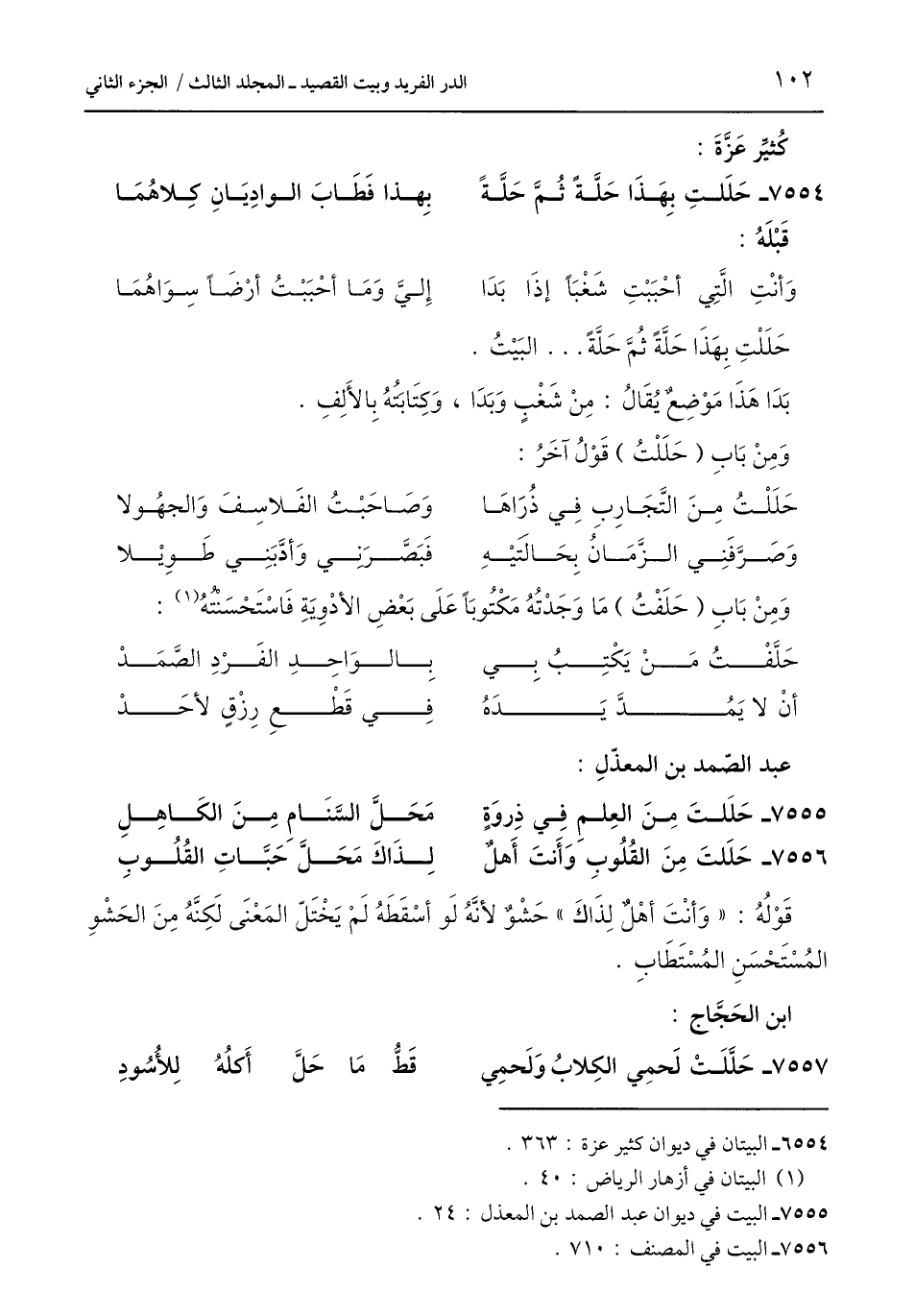 7554 - حَلَلتِ بِهَذَا حَلَّةً ثُمَّ حَلَّةً ... بِهذا فَطَابَ الوادِيَانِ كِلاهُمَا