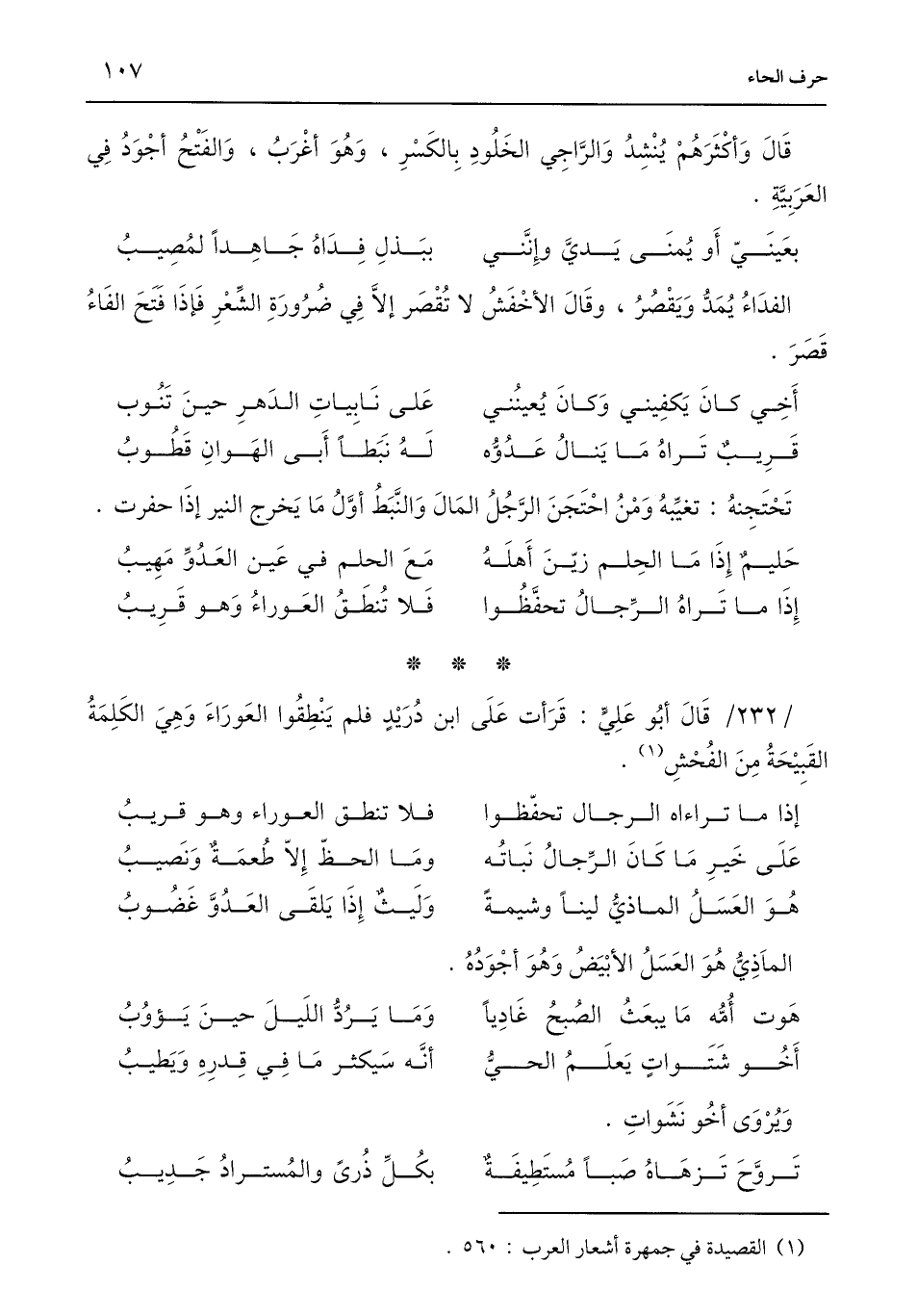(¬1) القصيدة في جمهرة أشعار العرب: 560.