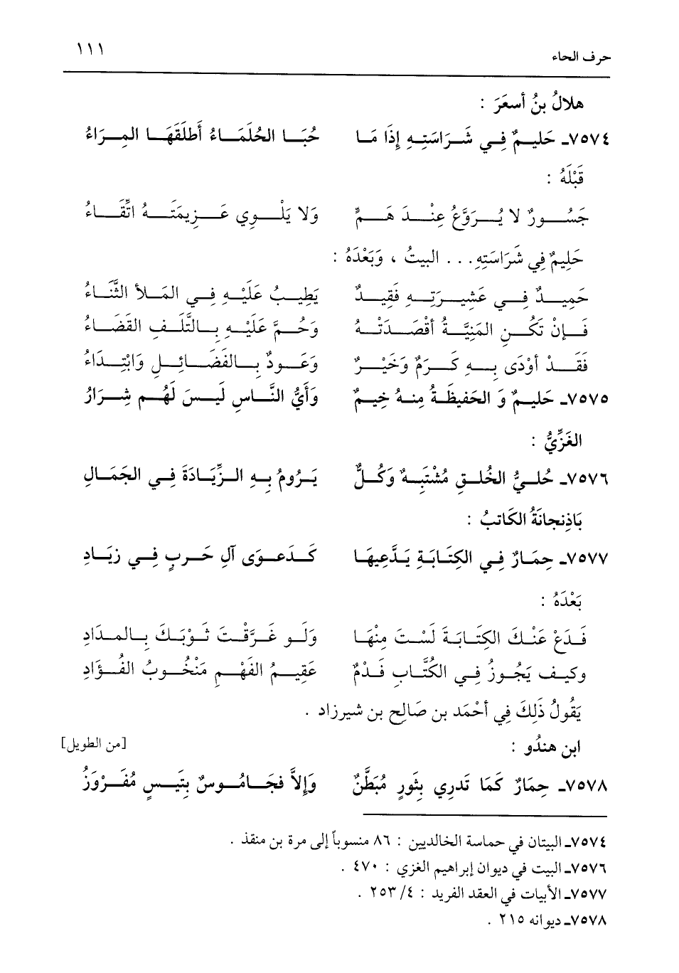 7577 - حِمَار فِي الكِتابَةِ يَدَّعِيهَا ... كَدَعوَى آلِ حَربِ فِي زيَادِ