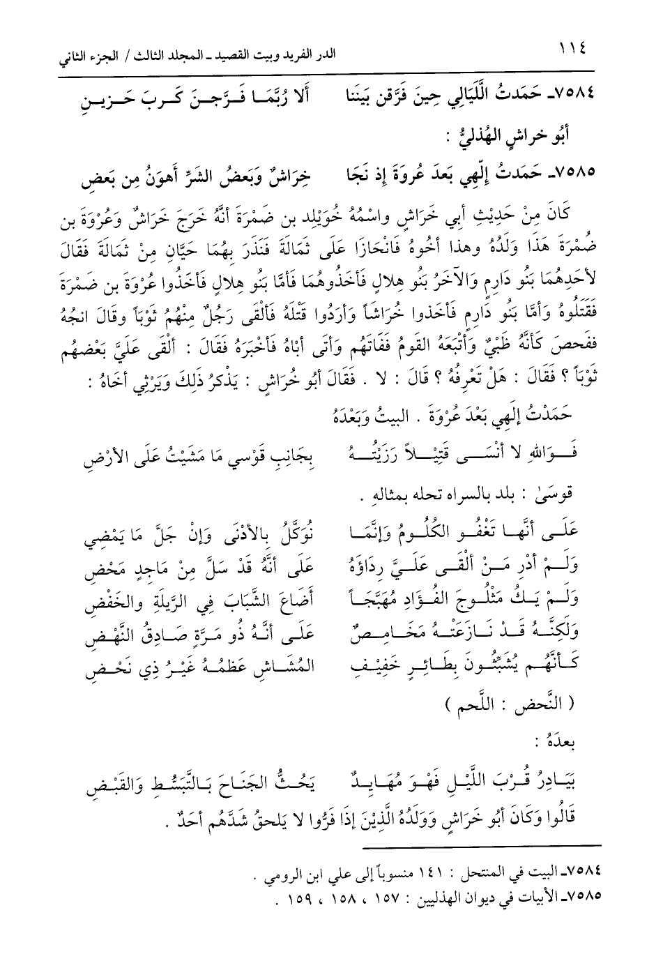 7585 - الأبيات في ديوان الهذليين: 157، 158، 159.