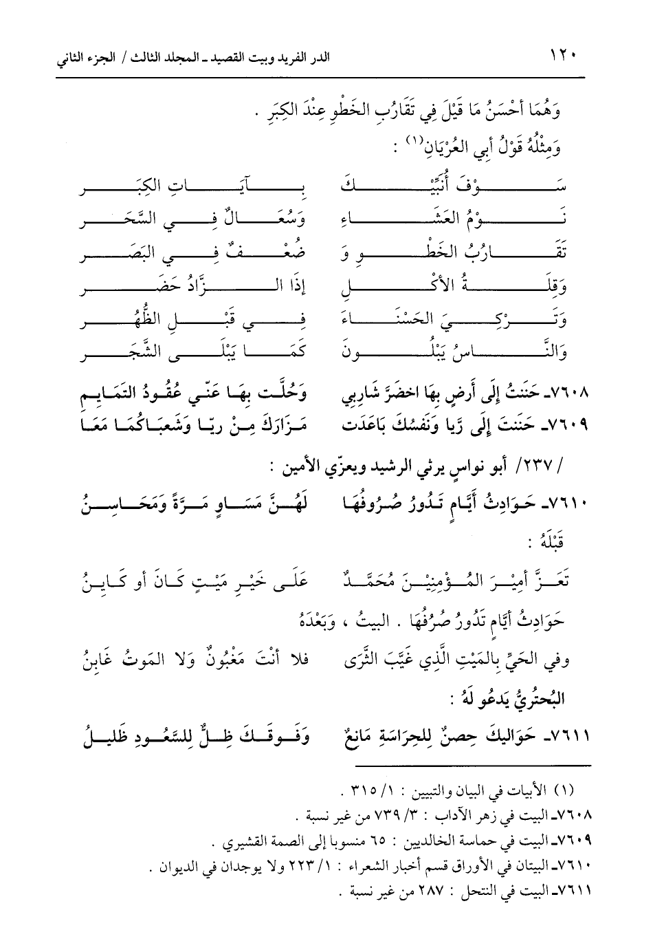 7610 - البيتان في الأوراق قسم أخبار الشعراء: 1/ 223 ولا يوجدان في الديوان.