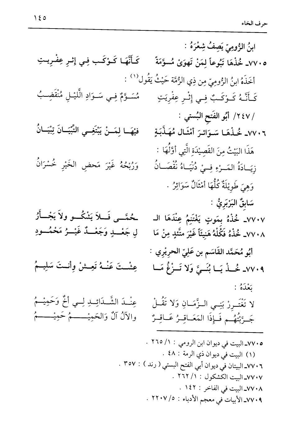 7705 - البيت في ديوان ابن الرومي: 1/ 265.