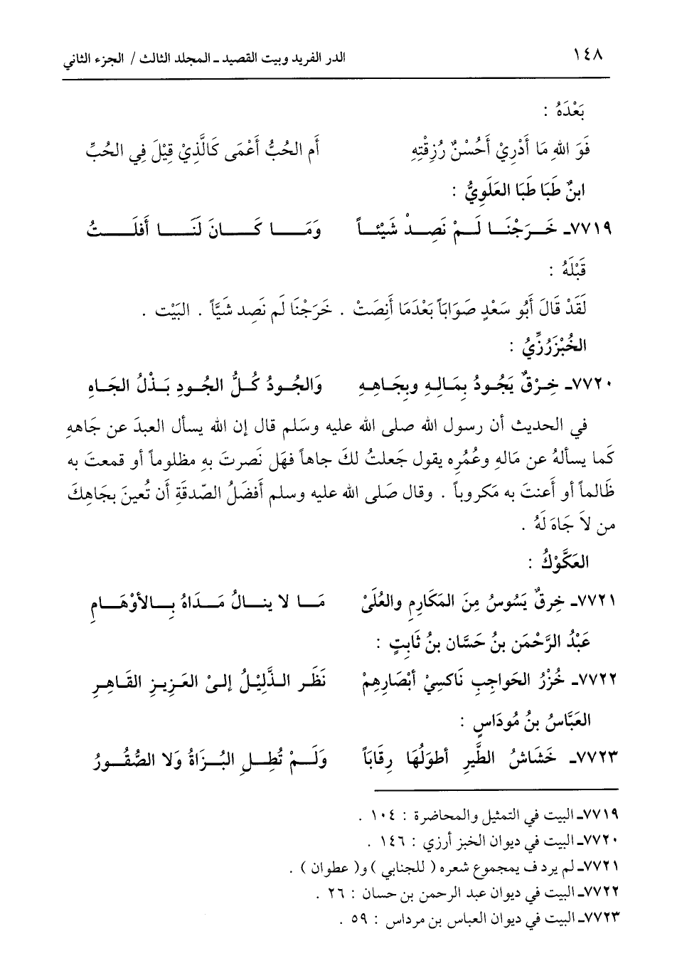 7720 - خِرْقٌ يَجُودُ بِمَالِهِ وبِجَاهِهِ ... وَالجُودُ كُلُّ الجُودِ بَذْلُ الجَاهِ