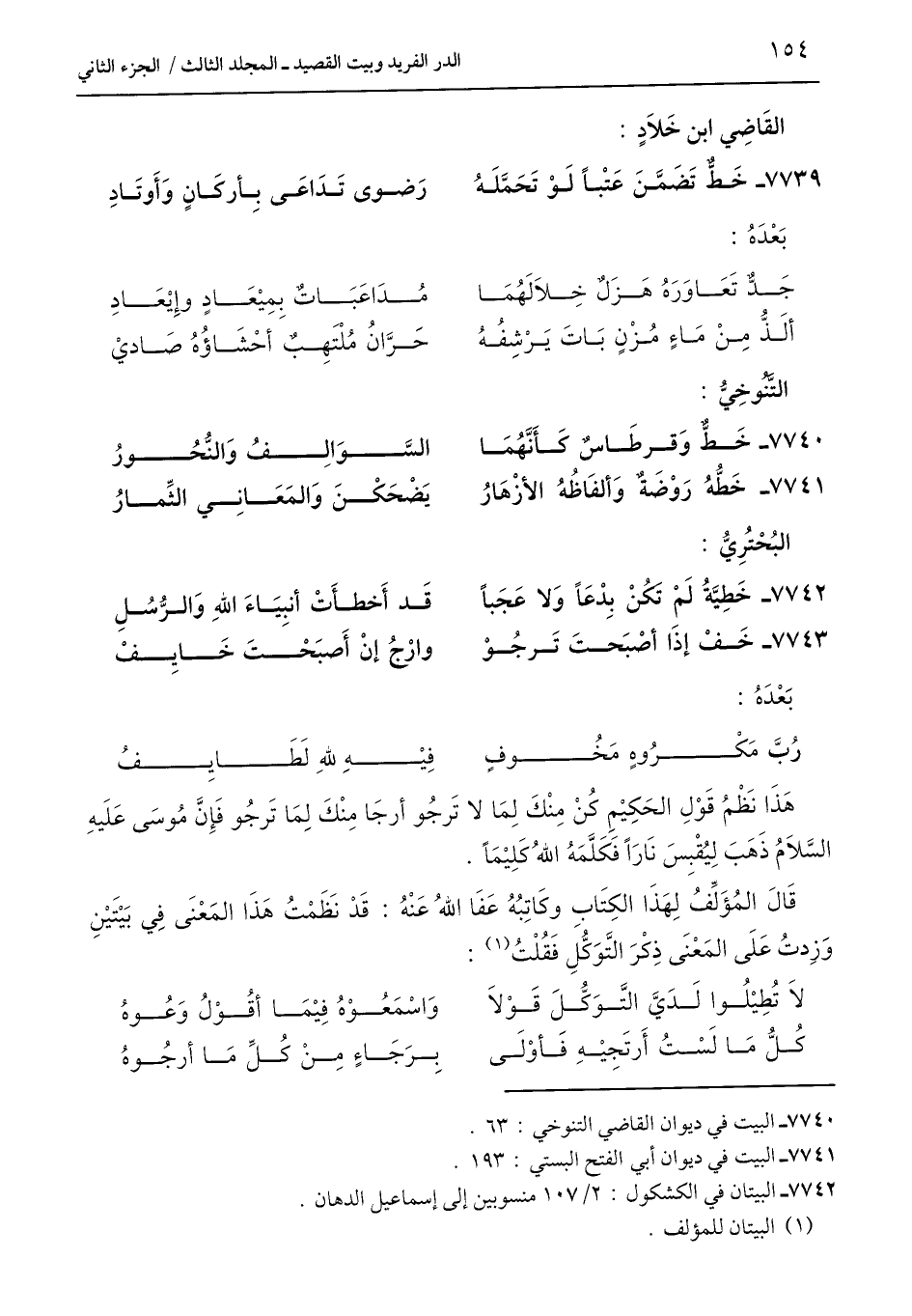 7740 - البيت في ديوان القاضي التنوخي: 63.