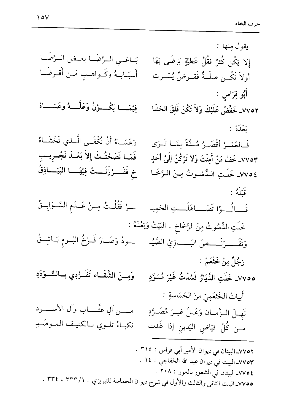 7755 - البيت الثاني والثالث والأول في شرح ديوان الحماسة للتبريزي: 1/ 333، 334.